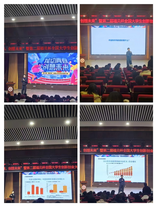 為進(jìn)一步提升學(xué)子對(duì)第二屆 “福貝杯” 全國大學(xué)生創(chuàng)新創(chuàng)業(yè)大賽的認(rèn)知度,充分激發(fā)學(xué)生的參賽熱情,搭建校園與行業(yè)對(duì)接的優(yōu)質(zhì)橋梁,2025 年 11 月 29 日下午,動(dòng)物科技學(xué)院在 1 號(hào)教學(xué)樓合 100 成功舉辦 “福貝杯” 大賽路演宣傳活動(dòng)。本次活動(dòng)緊扣 “寵動(dòng)青春,創(chuàng)想未來” 的核心主題,吸引了眾多對(duì)寵物行業(yè)及創(chuàng)新創(chuàng)業(yè)感興趣的學(xué)生參與。