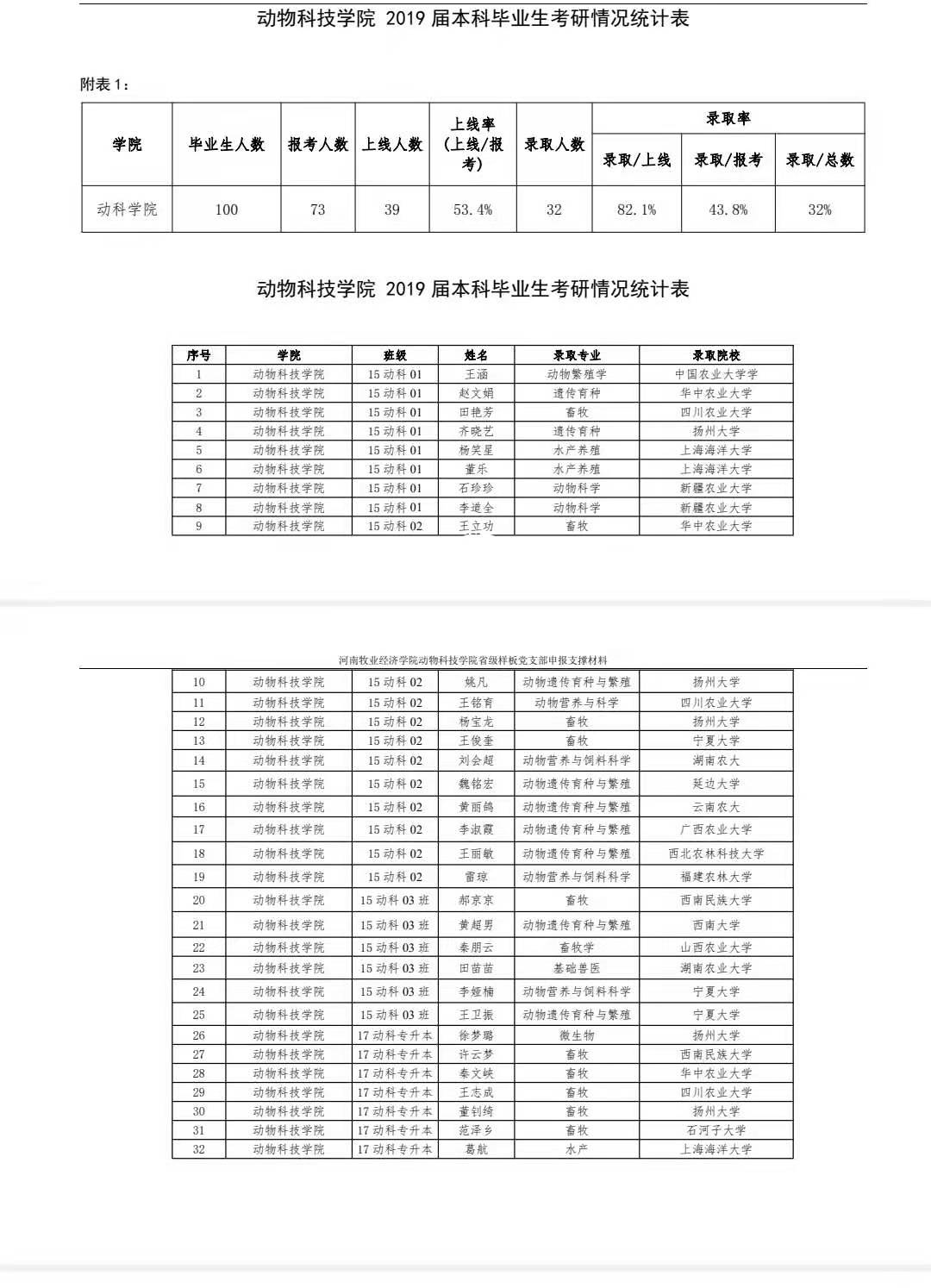 動物科技學(xué)院2019年全國碩士研究生考試錄取情況一覽表