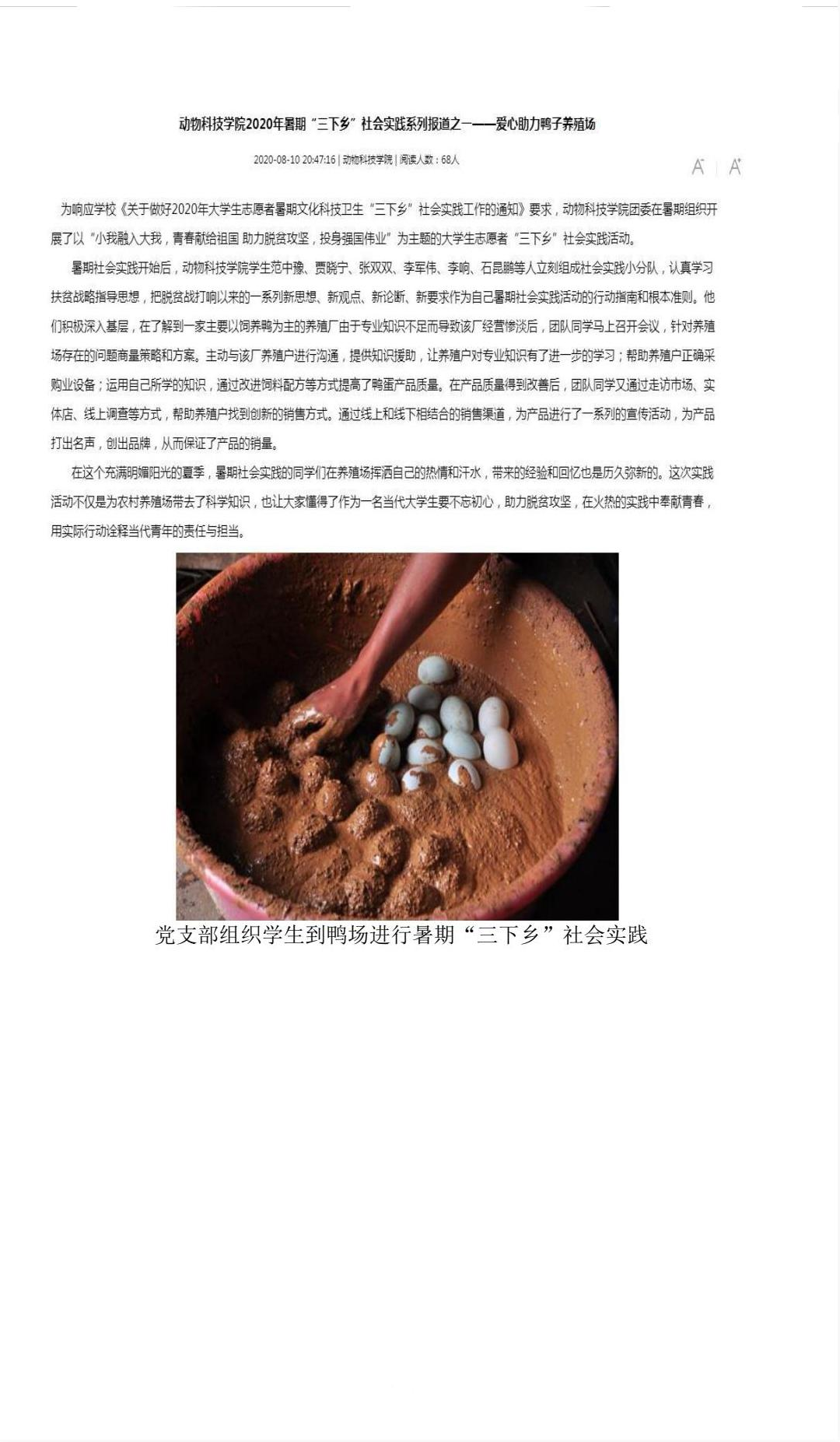 動(dòng)物科技學(xué)院2020暑假“三下鄉(xiāng)”社會(huì)實(shí)踐系列報(bào)道之一——愛(ài)心助力鴨子養(yǎng)殖場(chǎng)