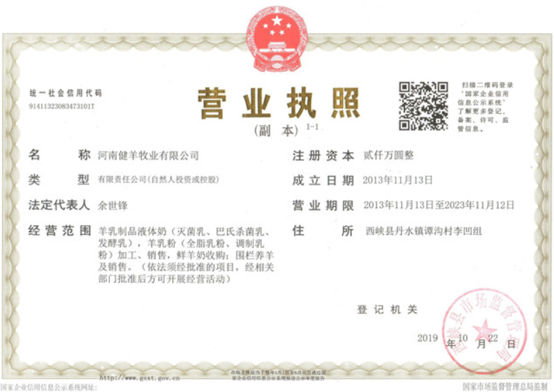 河南健羊牧業(yè)有限公司,位于南陽(yáng)市西峽縣丹水鎮(zhèn),成立于2013年11月,注冊(cè)資本2000萬(wàn)元,總資產(chǎn)2803萬(wàn)元。主要以牧草有機(jī)種植、奶山羊良種繁育、山羊奶加工、銷售和奶山羊技術(shù)研究為一體的全產(chǎn)業(yè)鏈科技型畜牧企業(yè)。公司目前產(chǎn)品主要巴氏殺菌純羊奶和風(fēng)味發(fā)酵羊奶。