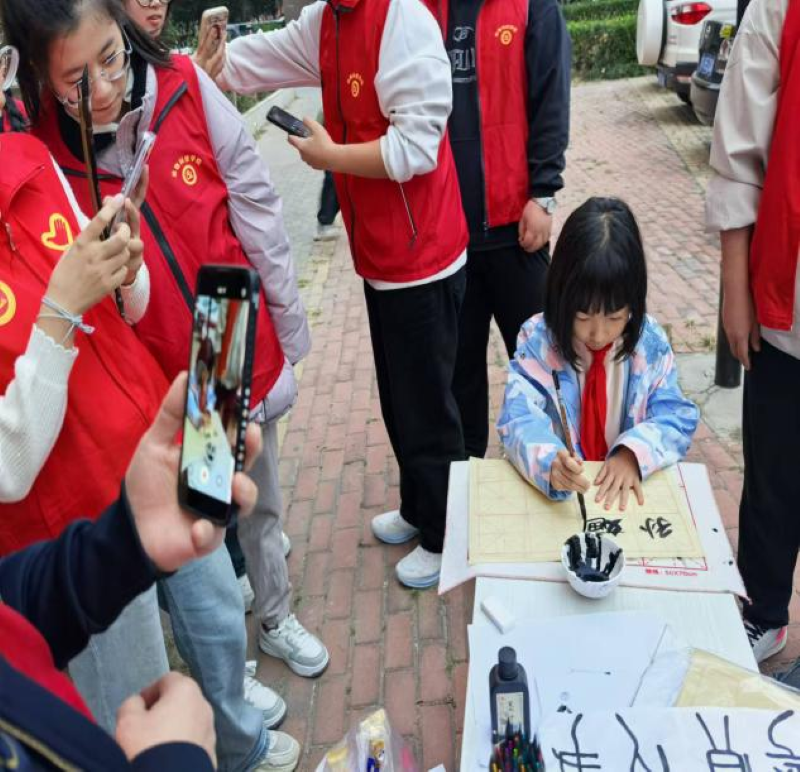 書(shū)法鑒賞區(qū)的志愿者們?cè)阼b賞區(qū)展示了多種風(fēng)格的書(shū)法作品,居民們?cè)诖笋v足欣賞,認(rèn)真觀察作品中的字體風(fēng)格、筆畫(huà)形態(tài)和結(jié)構(gòu)布局。志愿者在一旁耐心講解,幫助居民深入理解書(shū)法藝術(shù)與觀賞魚(yú)文化的融合之美,感受傳統(tǒng)文化的獨(dú)特魅力。